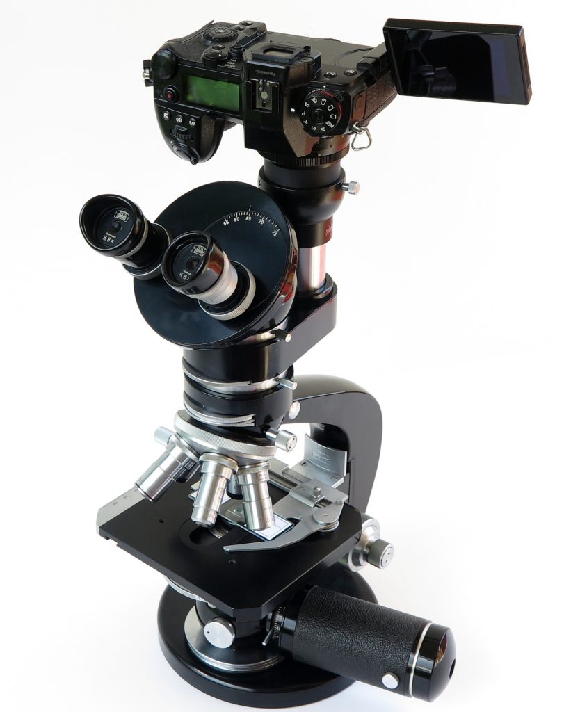 Ein Zusammenspiel zweier Welten: unten das Zeiss W-Stativ mit Technik aus den 1950er-Jahren, obendrauf die Panasonic Lumix G9 von 2018 mit einem 20-Megapixel-Sensor.